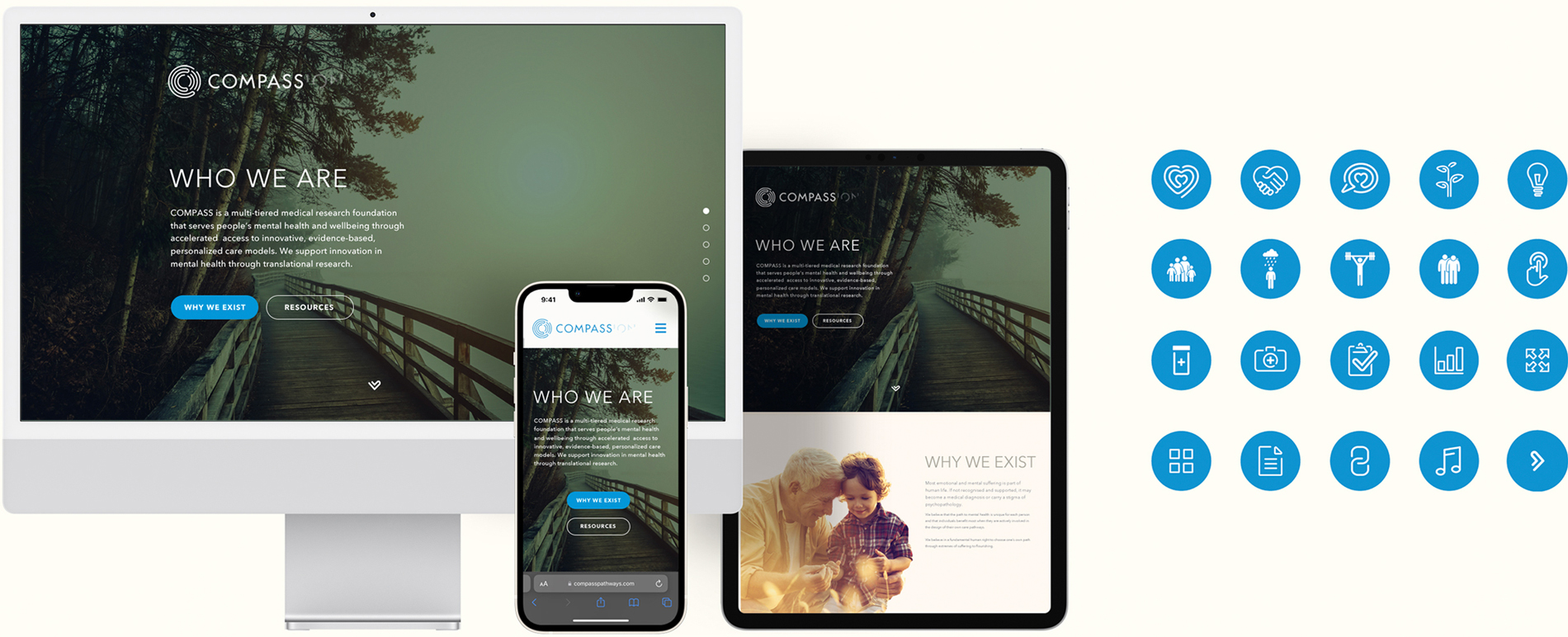 Working closely with the owners I developed a wide range of communications including brand guidelines, pitch documents, UX / UI and presentations for COMPASS pathways, a mental health and wellbeing company. COMPASS began as a charity but have since generated millions of pounds in funding as a fully fledged company, and I supported all of their brand and communications in the early stages.