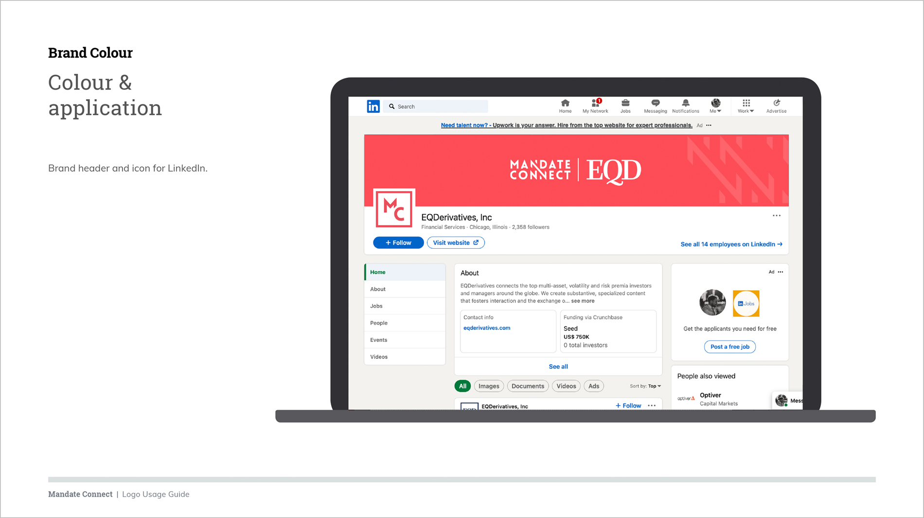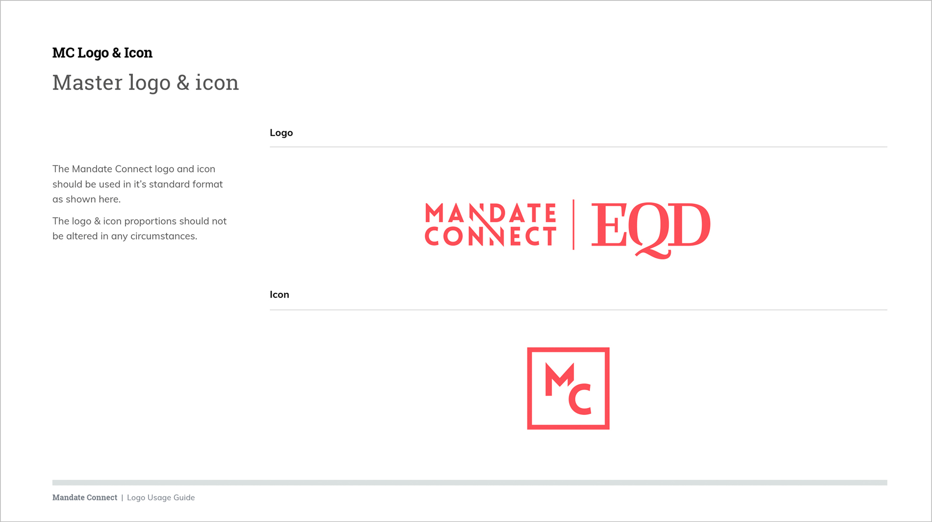 I created an identity for a new product for US based firm EQ Derivatives called Mandate Connect. This included icons and banners for a microsite and LinkedIn and needed to compliment the existing brand